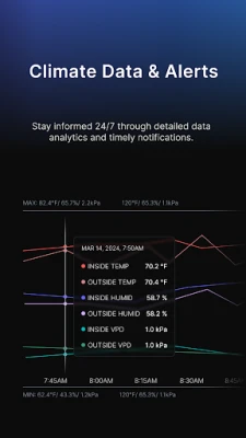 • Customizable alarms and push notifications help you stay on top of your fan and environment.