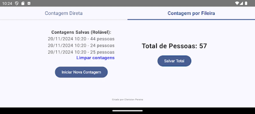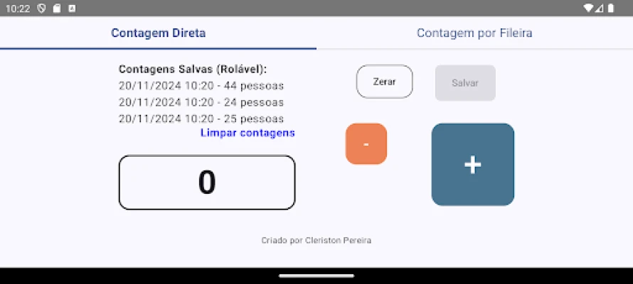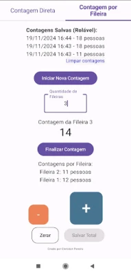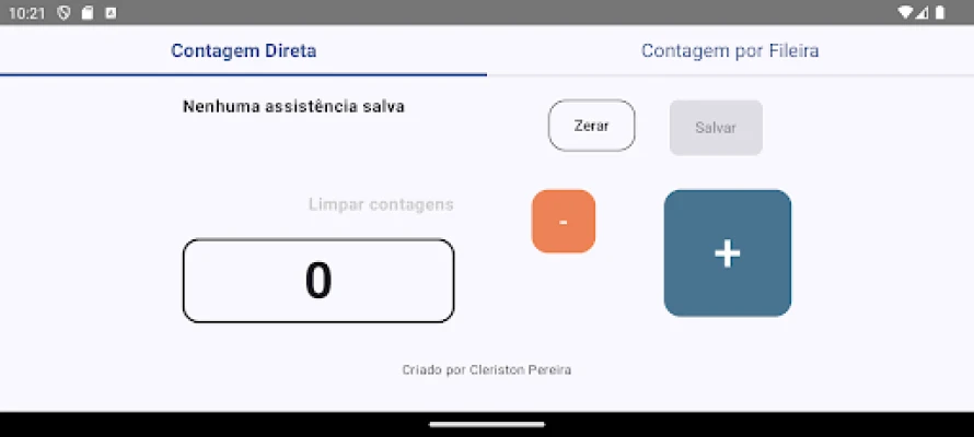 O Contador de Assistência é um aplicativo simples e intuitivo para registrar a quantidade de pessoas presentes em eventos ou reuniões de forma rápida e eficiente.