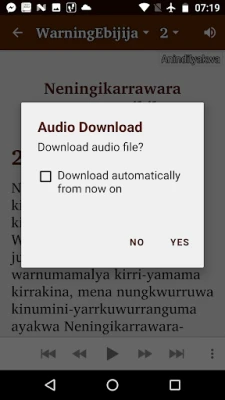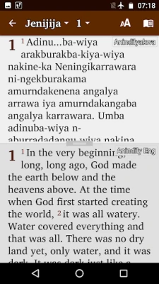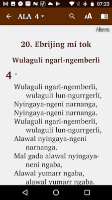 A collection of Scripture, songs, devotions and videos for 68 indigenous languages of Australia. These include Aboriginal and Torres Strait Islander languages as well as AUSLAN - Australian Sign Language The collection includes almost all published indigenous Scripture from the early 1800s until now. Scripture audio from Bible Society Australia, Wycliffe Bible Translators and Global Recordings Network Australia has been included, and where possible has been synchronized to the text.