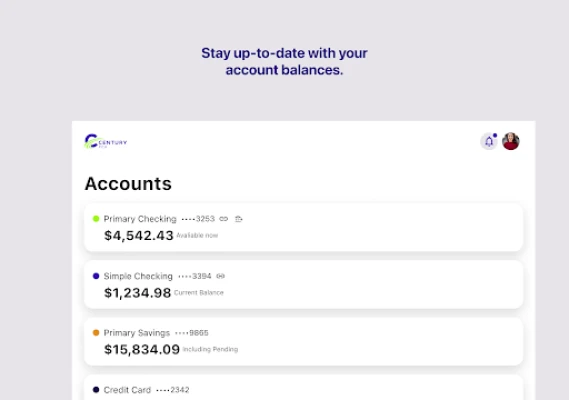 Get 24/7 secure access to your Century Federal Credit Union accounts. With the CFCU Online App, users can effectively manage their accounts, including home, auto, and other loans, from the convenience of their Android devices. This app allows one to monitor account balances, facilitate bill payments, review payment activity and transaction details, establish alerts, and much more.