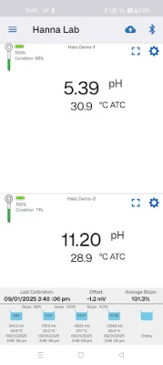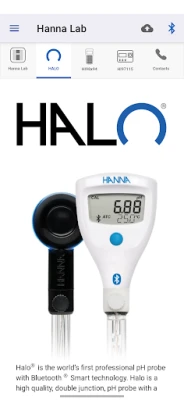 The Hanna Lab App turns your android phone or tablet into a full-featured pH meter when used with a Hanna Instruments HALO® or HALO2 pH probe with Bluetooth® Smart technology or a data management system when used with a Hanna Instruments HI98494 or HI98594 Multiparameter Bluetooth Portable Meter or HI97115 Marine Master Waterproof Multiparameter Photometer.