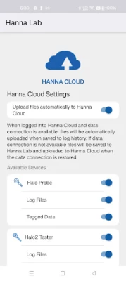-When connected to Hanna Cloud, log files from the Halo pH probes can be uploaded automatically or manually from log history. Files on the cloud can be merged and exported with a reduced logging interval. Annotated readings from the HALO probes can be uploaded immediately to the cloud and saved in a separate data file.