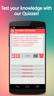 Journalism is history on the run. Everyone wants to be updated with the latest news, what about you? Learn the basics of Journalism with Journalism & Mass Communication App. Journalism App has different Categories, EduBank, Search, Breaking News, Contribute and Quizzes. The app has detailed description of more than 1000 terms under 13 broad Categories. Whether you are a student or a media person, Journalism & Mass Communication App is must to have latest news on your fingertips.