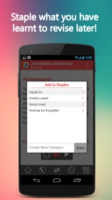 * Categories - Know all the terms related to journalism and their proper definitions with this Journalism App.