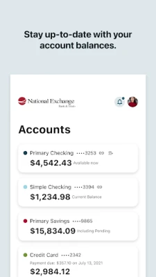Make banking easy and convenient with the National Exchange Bank Mobile app! For use with your personal banking accounts, this app is available to all online banking customers of National Exchange Bank & Trust, the NEBAT mobile app allows you to check balances and recent transactions, transfer funds and pay bills, all from your phone. Learn more at nebat.com.
