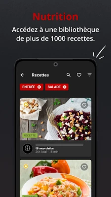 L’application ne se limite pas aux entraînements. La nutrition joue un rôle clé dans la progression, c’est pourquoi un accès exclusif à des recettes équilibrées et adaptées est inclus. Ces repas sont pensés pour optimiser les résultats, en fonction de ton objectif et de ton niveau d’activité physique. Plus besoin de chercher quoi manger ou de compter au hasard, tout est mis en place pour t’aider à suivre une alimentation cohérente et efficace.