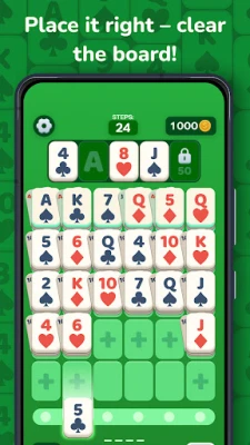- Matching cards will automatically move – sideways or upward – following the solitaire logic.