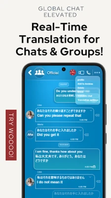 A communication app that does it all. We introduce live translation in your meetings, WOOOO A.I works efficiently while you conduct a live meeting with someone with a different language. Live Translation available in chat and live calls.