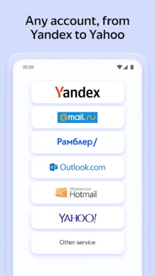 Manage messages, documents, and attachments with ease โ in one powerful inbox. Use it with your Yandex address or add accounts from Outlook, Mail.ru, or any other service.